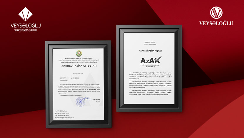 Veysəloğlu Şirkətlər Qrupuna daxil olan "Veysəloğlu" MMC-nin Mərkəzi Sınaq Laboratoriyası Azərbaycan Akkreditasiya Mərkəzi (AZAK) tərəfindən ISO/IEC 17025:2020 beynəlxalq standartı üzrə akkreditasiyadan uğurla keçib. Bu mühüm nailiyyət "Veysəloğlu"nun tarixində yalnız texniki addım deyil, həm də elmə, keyfiyyətə və insan sağlamlığına olan sadiqliyin rəsmi təsdiqidir.