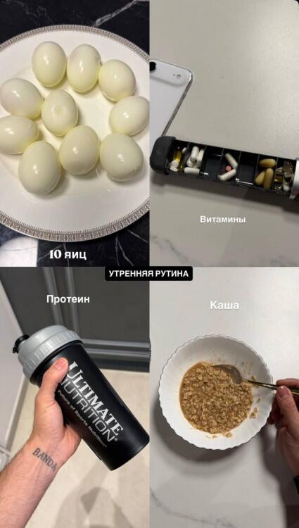 Milli.az xəbər verir ki, blogerin səhər rütini olduqca sərtdir. O, hər səhərini 10 ədəd qaynadılmış yumurta, yulaf və protein kokteyli ilə açır. Bundan əlavə, bədəninin ehtiyacı olan vitamin balansını da unutmur.
