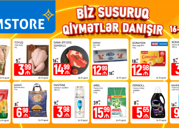 Tamstore Marketlər şəbəkəsi 16-19 aprel tarixlərində yenidən “Biz susuruq, qiymətlər danışacaq” kampaniyasına start verəcək. Kampaniya zamanı Vanak və Günaydın kərə yağları 12.99 manata, Romaşka xama 25 % 320 qramlıq 3.99 manata, 5 kilolouq Tanelli makaronu 3.90 manata, Əşrəfi basmati düyü kisə 2 kq 6.98 manata, Bammi tualet kağızı 32 rulon 9.99 manata, Pervol yuyucu maye 1 l 5.65 manata, Ariel yuyucu toz 5 kq 15.99 manata təklif olunacaq. Bundan başqa 18-19 aprel tarixlərində təzə toyuğun 1 kilosu 3.99 manat və sümüklü dana döş ətinin 1 kilosu 14.99 manat olacaq. Endirimlər təbii ki, bununla yekunlaşmır. Mağazada meyvə və tərəvəz maya dəyərinə, 2200 çeşiddə məhsul isə müxtəlif endirimlərlə təklif olunacaq.