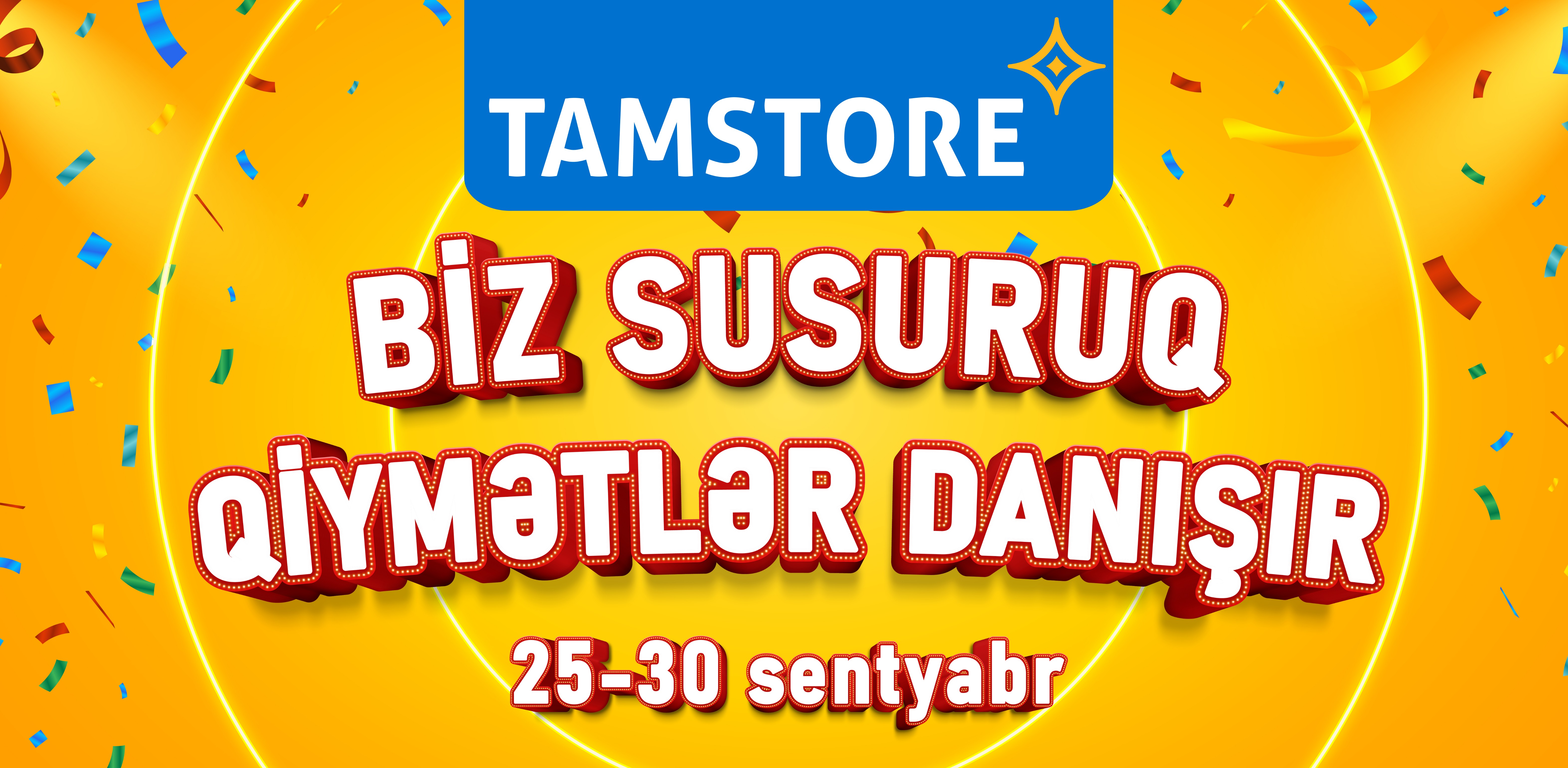 Tamstore Marketlər şəbəkəsi 25-30 sentyabr tarixlərində “Biz susuruq, qiymətlər danışacaq” kampaniyasına start verəcək. Kampaniya zamanı bananın 1 kilosu 1.50 manat, təzə toyuğun 1 kilosu 3 manat, sümüklü dana ətinin 1 kilosu 11.98 manat, Tajdar düyüsünün 1.8 kiloqramı 4.98 manat, Pegah kərə yağının 1 kilosu 10 manat, Feyri 450 ml 1.94 manat, Beta qara çay 500 qr 6.99 manat olacaq. Qeyd edək ki, endirim digər məhsullardan 10 manatlıq alış-veriş etdikdən sonra keçərli olacaq. Endirimlər təbii ki, bununla yekunlaşmır. Mağazada 3200 çeşiddə məhsul müxtəlif endirimlərlə təklif olunacaq.