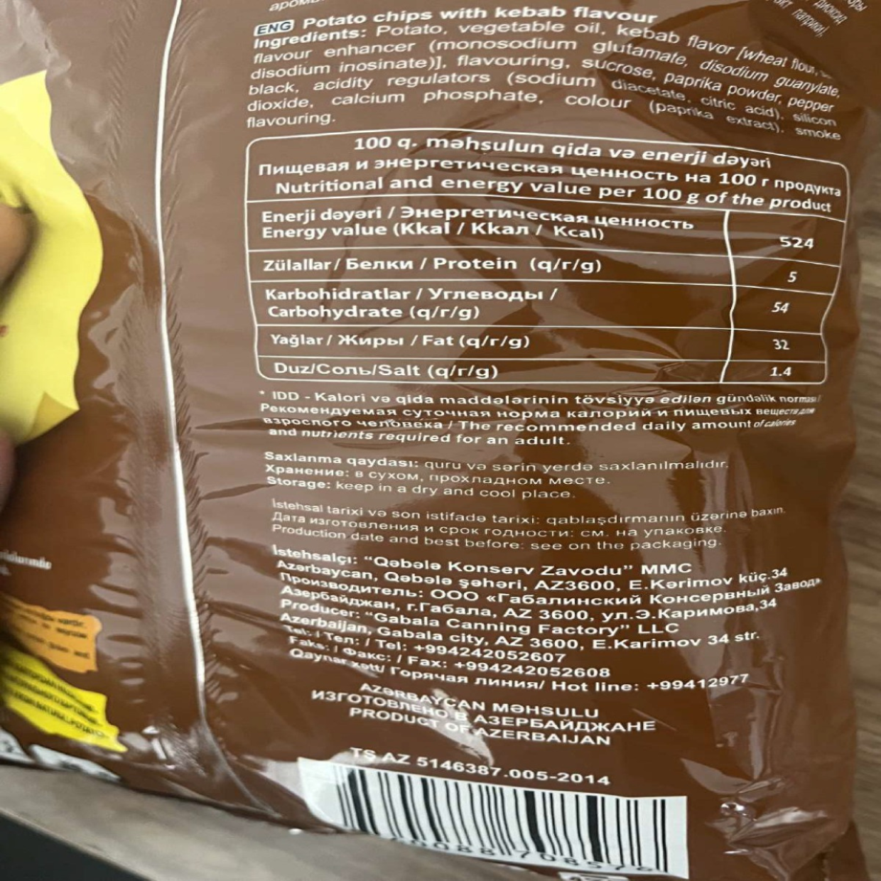 Sınaq nəticəsində “Rekord-2022” MMC-yə məxsus 1 nümunədə (“Rekord” əmtəə nişanlı 03.08.2025-03.02.2026 istehsal və son istifadə tarixli məhsul partiyası) və “Qəbələ Konserv Zavodu” MMC-yə məxsus 2 nümunədə (“Chipsim Kabab” əmtəə nişanlı 19.08.2025-19.04.2026 istehsal və son istifadə tarixli, “Chipsim Tomat” əmtəə nişanlı 07.08.2025-07.04.2026 istehsal və son istifadə tarixli məhsul partiyalarında) qida əlavəsinin normadan artıq olduğu müəyyən edilib. Aşkar edilmiş uyğunsuzluqla əlaqədar istehsalçı müəssisələrdə qanunvericiliyə uyğun zəruri tədbirlər görülərək, qeyd olunan istehsal tarixli məhsul partiyalarının ticarət şəbəkələrindən geri çağrılması və yığışdırılmasına dair müvafiq qərar qəbul olunub.