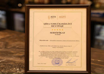Nəticələrə əsasən, müəssisədə qida təhlükəsizliyi tələblərinin yüksək səviyyədə tətbiq olunduğu müəyyən edilib və ölkədə ilk dəfə bir otelin nəzdində fəaliyyət göstərən restorana “5 ulduz” sertifikatı təqdim olunub.