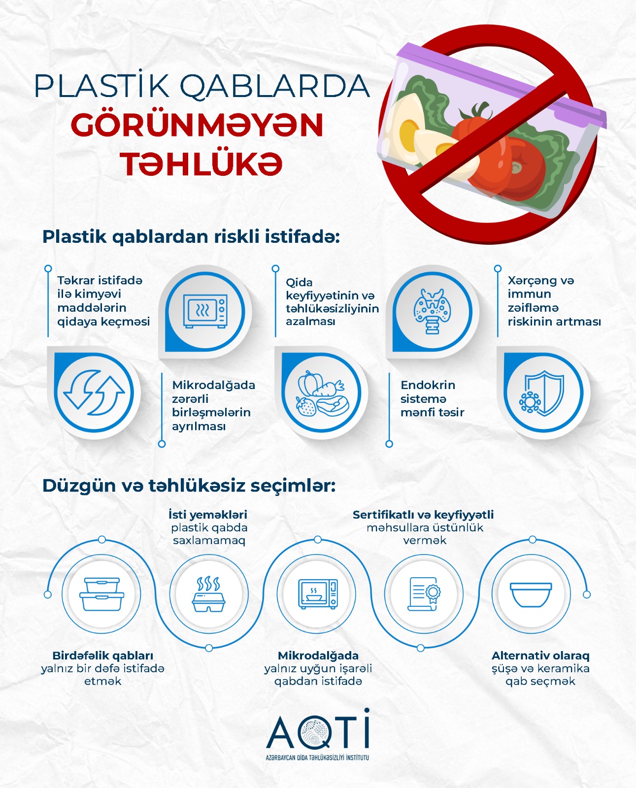 Foodinfo.az AQTİ-nin məlumatlarına istinadla bildirir ki, xüsusilə plastik qabların təkrar istifadəsi zamanı onların tərkibində olan kimyəvi maddələr qidaya keçir. Proses gözlə görünməsə də, orqanizmə təsiri zamanla özünü göstərir.