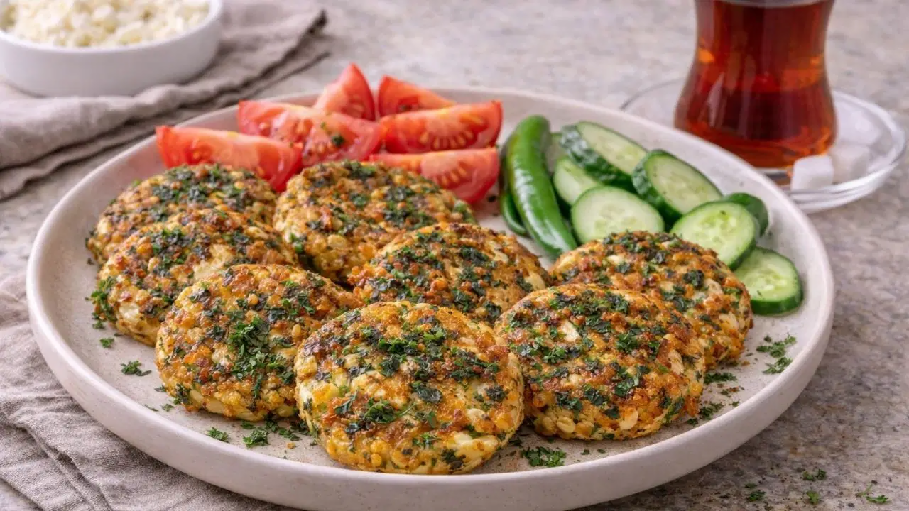 Qatı konsistensiyalı bir xəmir əldə etdikdən sonra əlinizlə və ya qaşıqla yastı, yuvarlaq küftə forması verin.
