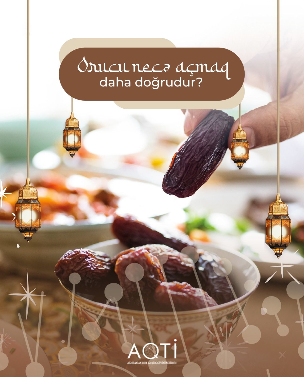 Foodinfo.az orucu açmaqla bağlı Azərbaycan Qida Təhlükəsizliyi İnstitutunun (AQTİ) tövsiyələrini təqdim edir.