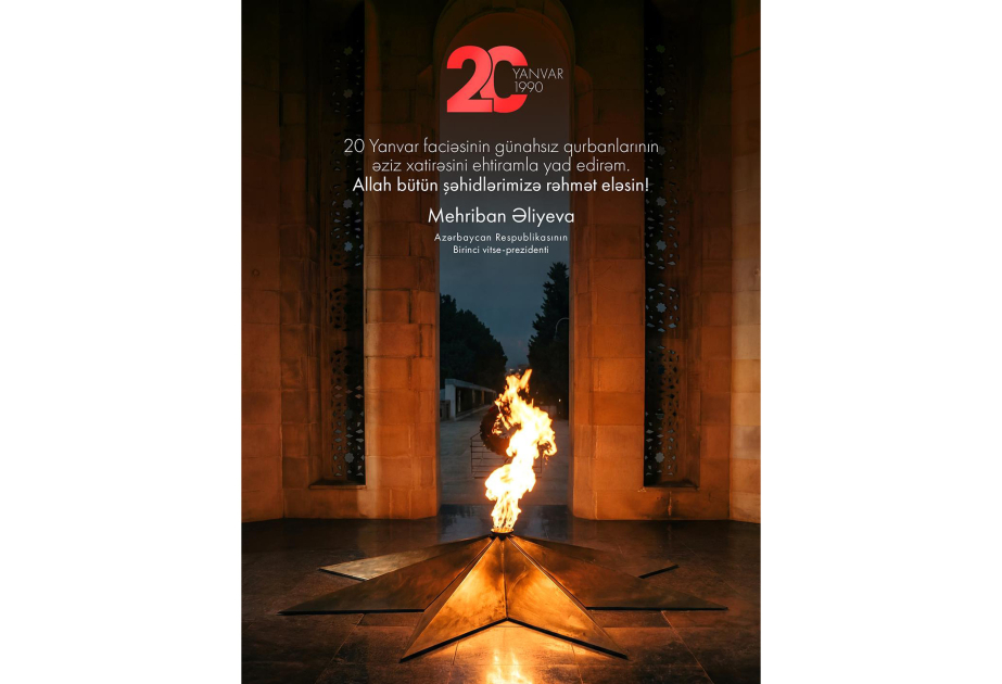 Azərbaycan Respublikasının Birinci vitse-prezidenti Mehriban Əliyeva sosial şəbəkə hesablarında 20 Yanvar faciəsinin 36-cı ildönümü ilə bağlı paylaşım edib.