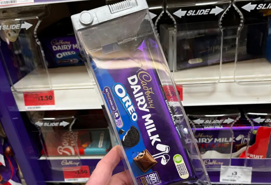 Böyük Britaniyada bəzi mağazalarda şokolad məhsulları oğurluğun qarşısını almaq məqsədilə xüsusi plastik qoruyucu qutulara yerləşdirilib.