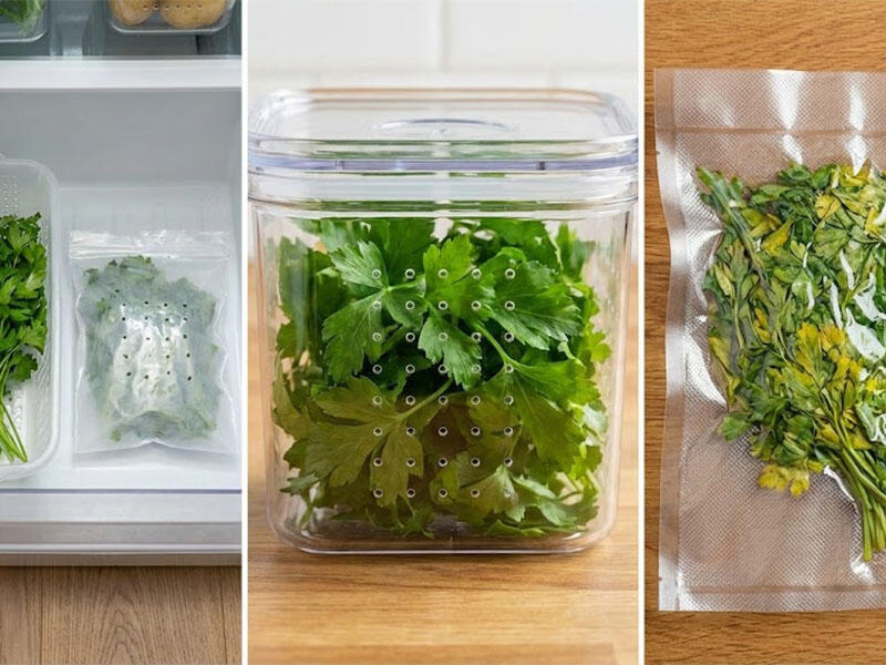 Saxlama qabının içinə bir ədəd kağız dəsmal yerləşdirin. Kağız dəsmal artıq nəmi özünə çəkərək yarpaqların saralmasının qarşısını alacaq. Cəfəriləri qaba çox sıx olmadan yerləşdirib, üzərini yenidən kağız dəsmalla örtün və qapağını bağlayın. Bu üsulla göyərti 7-10 gün təzə qalır.