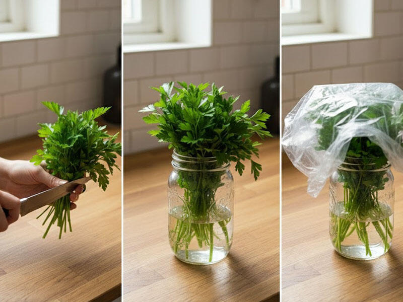 Cəfərini güldandakı çiçək kimi saxlamaq çox effektivdir. Saplarını yüngülcə kəsib az miqdarda su tökülmüş bankaya yerləşdirin (yalnız saplar suya dəyməlidir). Üstünə boş bir sellofan torba keçirərək mini "parnik" mühiti yaradın. Suyu iki gündən bir dəyişməklə uzunmüddətli təravət əldə edə bilərsiniz.