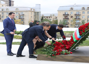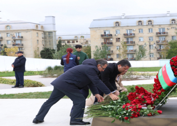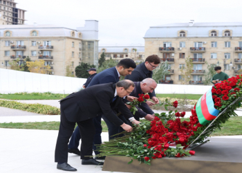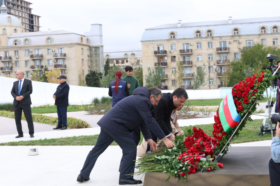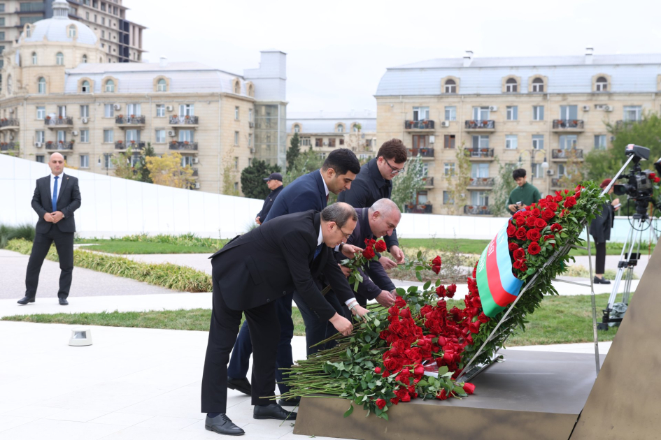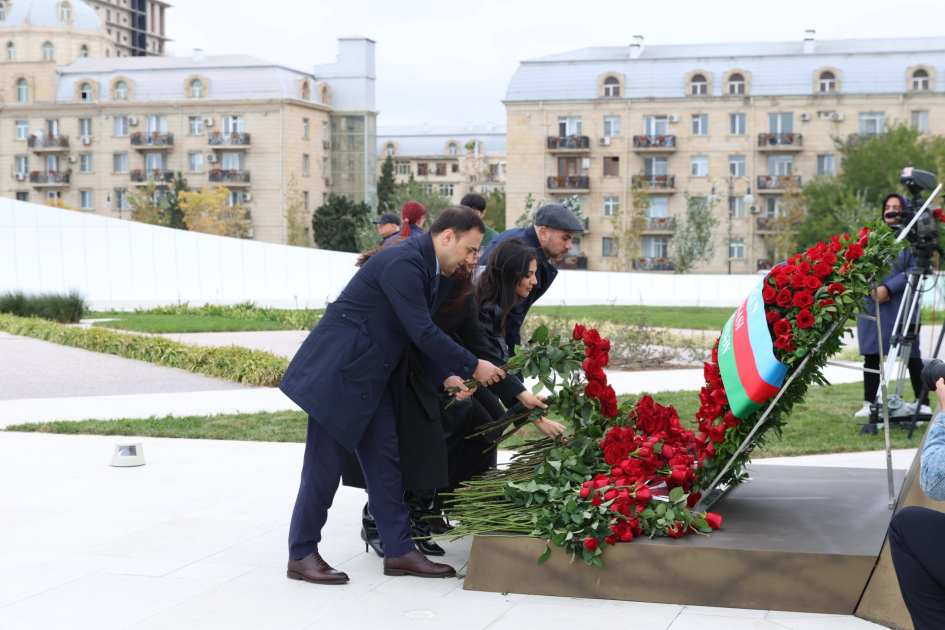 Daha sonra Medianın İnkişafı Agentliyinin kollektivi Zəfər parkına gəlib, Zəfər abidəsinin önünə gül dəstələri düzüb.