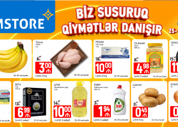 Tamstore Marketlər şəbəkəsi 25-30 sentyabr tarixlərində “Biz susuruq, qiymətlər danışacaq” kampaniyasına start verəcək. Kampaniya zamanı bananın 1 kilosu 1.50 manat, təzə toyuğun 1 kilosu 3 manat, sümüklü dana ətinin 1 kilosu 11.98 manat, Tajdar düyüsünün 1.8 kiloqramı 4.98 manat, Pegah kərə yağının 1 kilosu 10 manat, Feyri 450 ml 1.94 manat, Beta qara çay 500 qr 6.99 manat olacaq. Qeyd edək ki, endirim digər məhsullardan 10 manatlıq alış-veriş etdikdən sonra keçərli olacaq. Endirimlər təbii ki, bununla yekunlaşmır. Mağazada 3200 çeşiddə məhsul müxtəlif endirimlərlə təklif olunacaq.