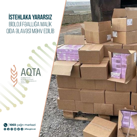 Azərbaycan Respublikasının Qida Təhlükəsizliyi Agentliyi (AQTA) ölkəyə idxal olunan qida məhsullarına nəzarət tədbirlərini davam etdirir.