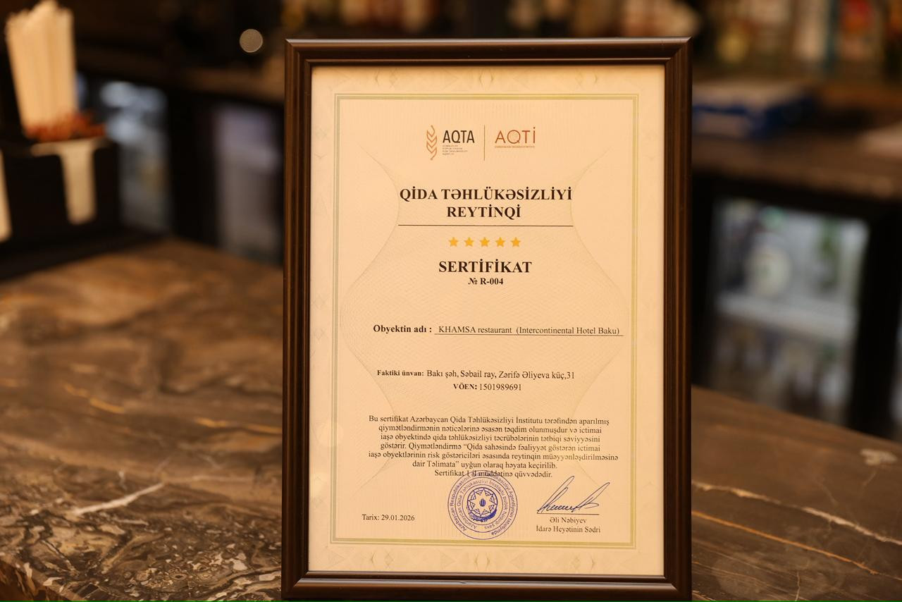 Azərbaycan Qida Təhlükəsizliyi İnstitutu (AQTİ) tərəfindən həyata keçirilən “Ulduz-reytinq” layihəsi çərçivəsində “Intercontinental Hotel Baku” nəzdində fəaliyyət göstərən “Xəmsə” restoranında qiymətləndirmə aparılıb.