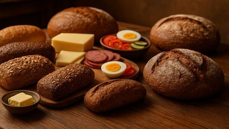 Səhərlər yağla yeyilən "Brötchen" (kiçik yumru çörəklər), günorta yeməklərində şorbanın yanında "Bauernbrot" (kənd çörəyi), axşam isə sadə "Abendbrot" təqdim olunur.