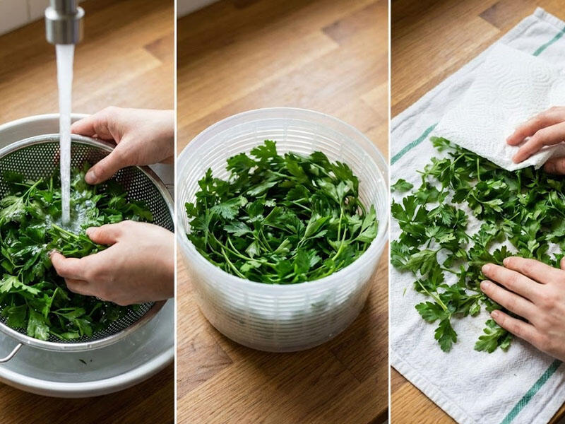Cəfərini aldıqdan sonra bol su ilə yuyun, lakin ən kritik məqam onu tam qurutmaqdır. Yarpaqların üzərində qalan nəm çürüməni və saralmanı sürətləndirir. Qurutmaq üçün salat qurudan cihazdan və ya təmiz mətbəx dəsmalından istifadə edə bilərsiniz. Tam quruduğuna əmin olmadan soyuducuya qoymayın.