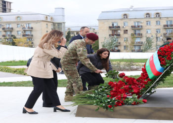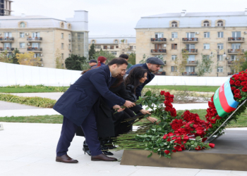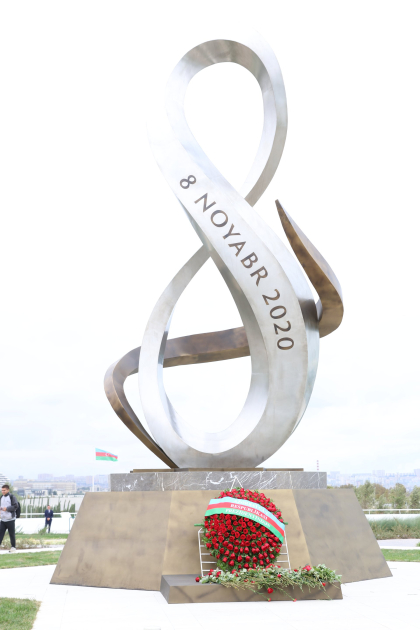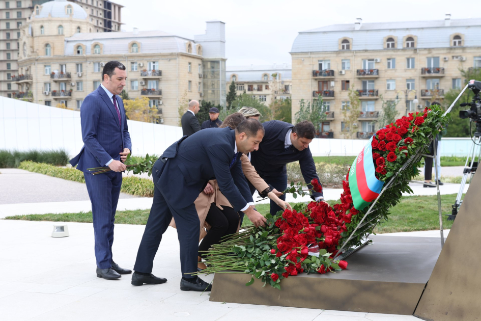 Daha sonra Medianın İnkişafı Agentliyinin kollektivi Zəfər parkına gəlib, Zəfər abidəsinin önünə gül dəstələri düzüb.